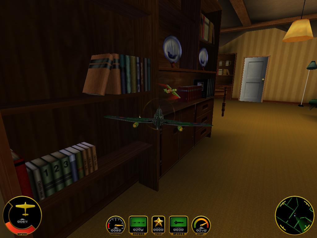 Огромный, удивительный особняк, в нужные моменты почти нежилой, но весь переполненный жизнью. Здесь под кроватью можно обнаружить новые краски, а из разбитой вазы выхватить дополнительный боезапас. Здесь на чердаке хранят полотна таинственных мастеров живописи, в ванной плавают подлодки, а первый этаж охраняет целая танковая дивизия. И кто додумался упрятать секретные чертежи в неприметный тайник в маминой спальне? Хозяин ушел? В школу? Вернется нескоро? Поиграем? ВПП уютно расположившегося под стулом аэродрома расцветает яркими огнями, и вот уже малютка “Fiat” с мягким похрустыванием кружит по комнате, пугая расплывчатой тенью прохожих, случайно заглянувших в щелку жалюзи. Простора явно не хватает, но дом огромен — два этажа с кучей комнат, больших и маленьких, забитая утварью кухня, тесный с неизбежным нагромождением всякого хлама чулан, гараж и даже небольшой сад с вражеской базой в придачу. Каждый новый уровень открывает новые квадратные метры, и если бы не неизбежная нехватка топлива, я бы не удержался от простой прогулки по коридорам, от залихватских пируэтов между лестничными перилами и ножками стола. Хотя, их и так хватает. Это может показаться странным, но разработчики действительно моделируют войну. Не абстрактный конфликт между Петей и Васей из соседского небоскреба, а неизвестную боевую операцию с участием вооруженных сил Германии и союзников времен Второй Мировой (для пущей атмосферности ведется личный боевой журнал с наградами за особо выдающиеся успехи). Как следствие, на суд представлены две независимые кампании по десятку миссий на сторону.